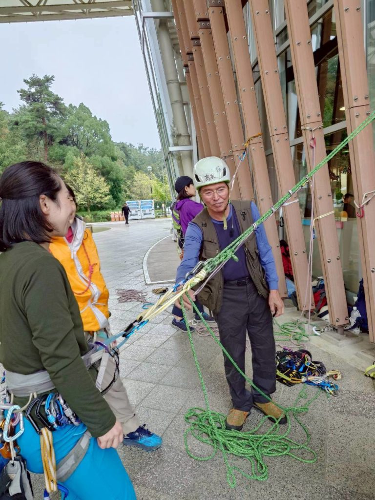 こちらは岩場でのクライミングを想定した実践的なコース。墜落して動けないリーダーや、登れなくなったセカンドを引き上げたり、介助しながら降ろしたり。岩登りのシステムやロープ、スリングの扱いなど、複合的な作業で難しいい講習内容となっています。