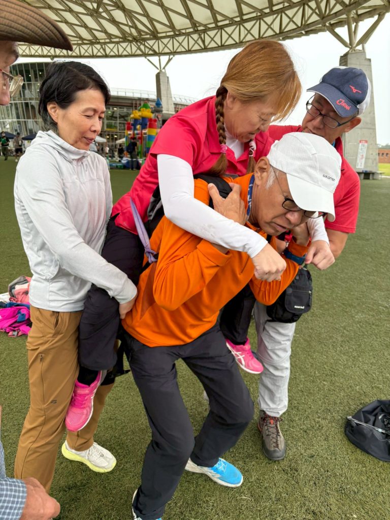 講師のの指導で、コンパスを使った読図の方法や負傷者のファーストエイドを行いました。テーピングや三角巾を使った固定方法や、ザックや雨具を使った各種搬送方法を学びました。